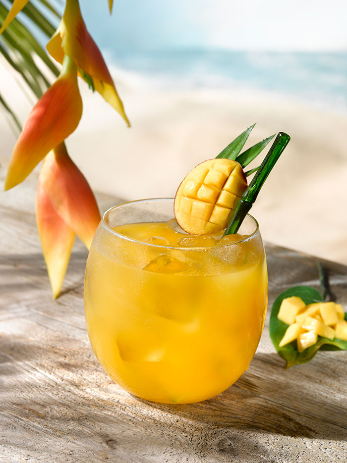 Dans un verre old fashioned, versez votre cocktail puis ajoutez les graines de passion.