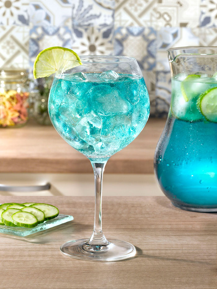Remplir aux ¾ de glaçons le verre puis verser le tout